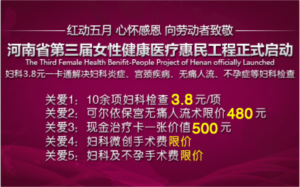 红动5月,心怀感恩,向劳动者致敬,把爱献给光荣的劳动者。劳动很美丽,但是随着女性半边天在生活和工作的压力不断增加,是很多女性的身体健康亮起了红灯。2013年5月1日,中国医师协会携手郑州新世纪女子医院、河南电视台、郑州电视台、河南商报、郑州晚报、东方今报、百度等平台,隆重推出了“河南省第三届女性健康医疗惠民工程”大型公益活动,该活动以关爱女性健康为主题,为期1个月,让广大女性在得到妇科炎症、早孕、宫颈疾病、不孕症等各类常见妇科疑难病症惠民限价的同时,提高郑州女性朋友健康水平。郑州新世纪女子医院的院长许心杰说,关爱女性健康,是我们的责任,不让妇科疾病成为您的困扰,是我们的心愿。