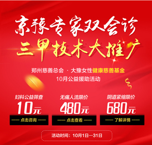 前言:2017年10月1日至10月31日,郑州新世纪女子医院推出“京豫专家双会诊 妇科技术大推广”活动,活动期间邀请到京豫名医耿白霞教授、郭小奇教授、许心杰教授、闫丽华主任等知名专家会诊,同时还开展女性健康公益筛查,对部分疑难病症实行慈善基金援助,在提高河南女性就医质量的前提下,切实减轻患者就医的经济负担。